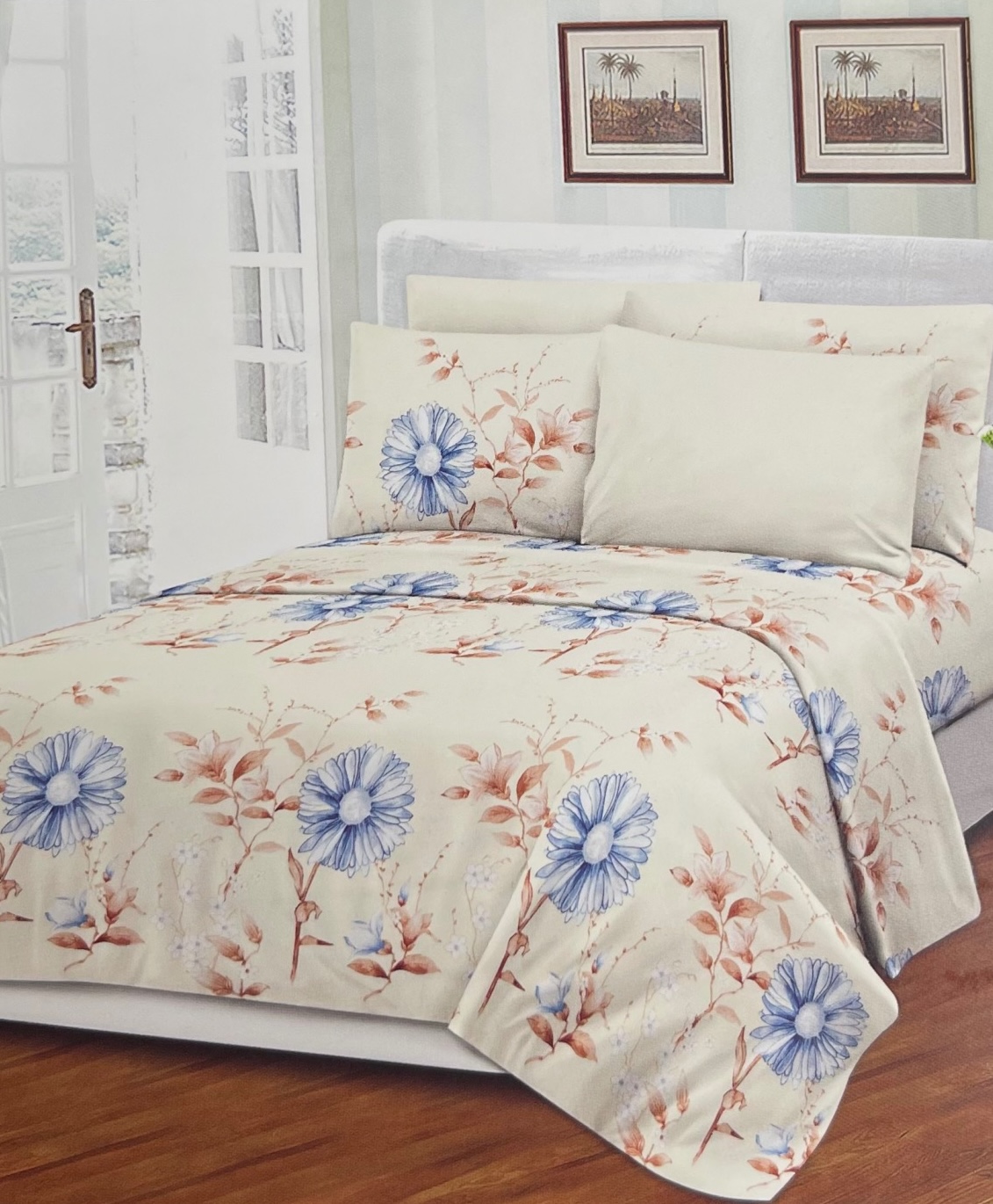 Our bedsheets are crafted from premium-quality fabrics chosen for comfort and durability. Some collections are made from 100% cotton, loved for its natural softness, breathability, and skin-friendliness. Others feature a cotton-poly blend for added strength, easy care, and wrinkle resistance- ideal for everyday use. All fabrics are gentle on the skin.