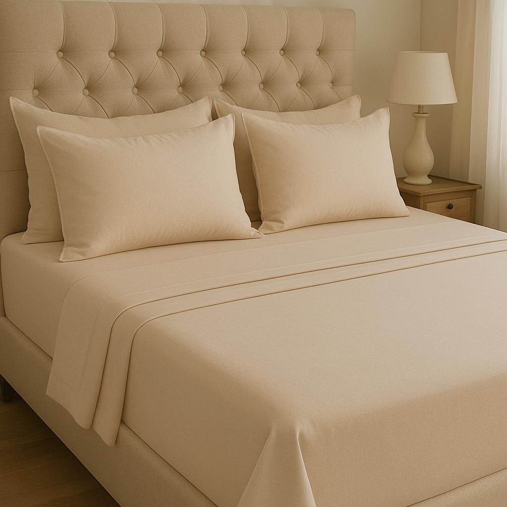 Our bedsheets are crafted from premium-quality fabrics chosen for comfort and durability. Some collections are made from 100% cotton, loved for its natural softness, breathability, and skin-friendliness. Others feature a cotton-poly blend for added strength, easy care, and wrinkle resistance- ideal for everyday use. All fabrics are gentle on the skin.